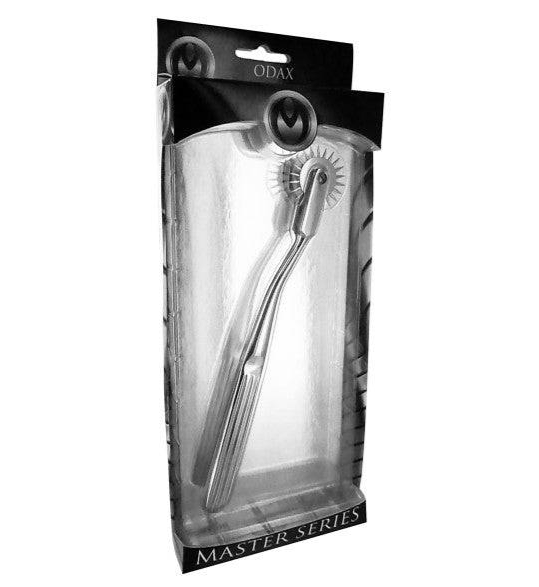 Test the limits of sensitivity play with the Odax Sensation Wheel from the Master Series. Run this premium spiked wheel across the skin and other highly treasured areas for an exciting prickle of pleasure. Made of stainless steel and deviously designed with a row of evenly spaced sharp pins that turn smoothly as it rolls across the flesh, the Odax is ideally designed for intense, exquisite pleasure. Take it to the next level with a little temperature play...the slick material of the Odax can be warmed or cooled for an extra spike of sensation.